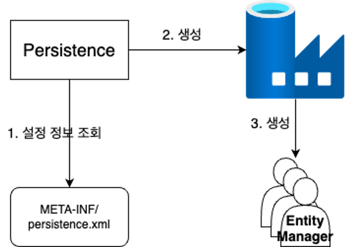 - EntityManager는 EntityManagerFactory를 통해 생성하여 사용 가능