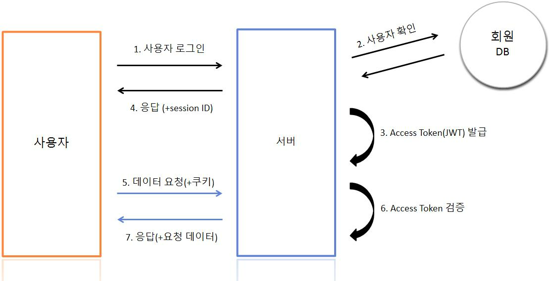 - JWT 기반 인증은 쿠키/세션 방식과 유사하게 JWT 토큰(Access Token)을 HTTP 헤더에 실어 서버가 클라이언트를 식별함